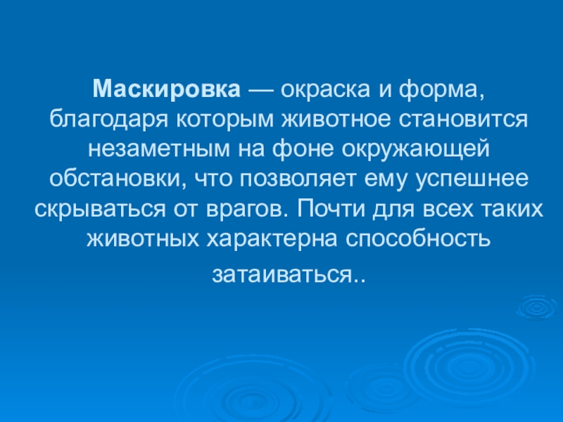 фоне окружающей обстановки, что позволяет ему успешнее скрываться от врагов. Почти для всех таких животных характерна способность затаиваться..