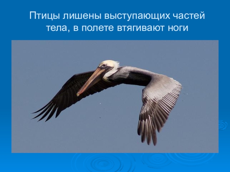 Слайд 7Птицы лишены выступающих частей тела, в полете втягивают ноги