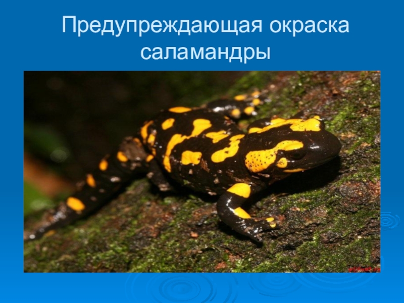 Слайд 39Предупреждающая окраска саламандры