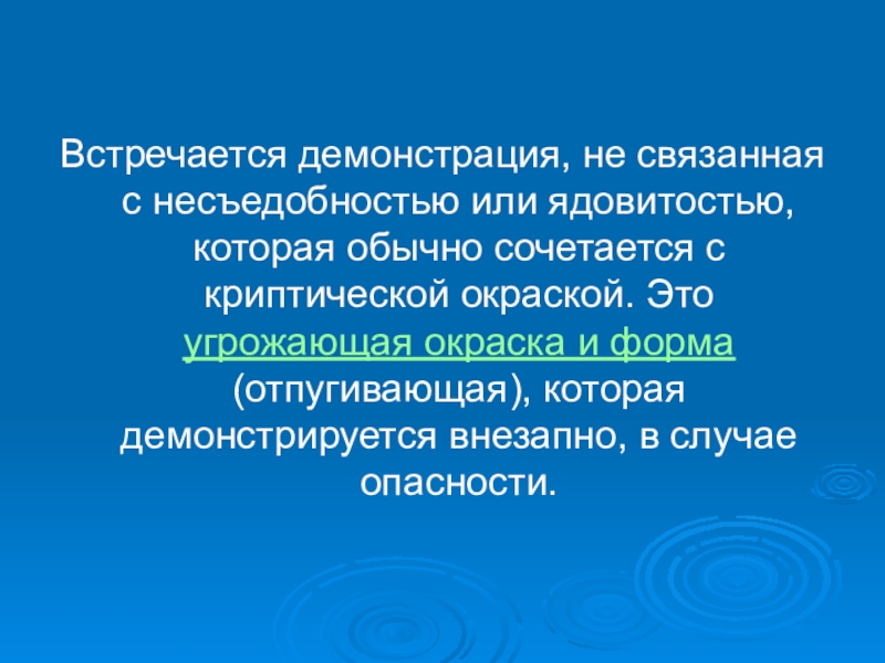 Слайд 43Встречается демонстрация, не связанная с несъедобностью или ядовитостью, которая обычно сочетается