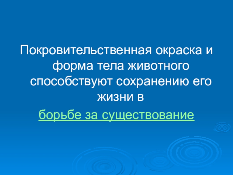 Слайд 3Покровительственная окраска и форма тела животного способствуют сохранению его жизни в