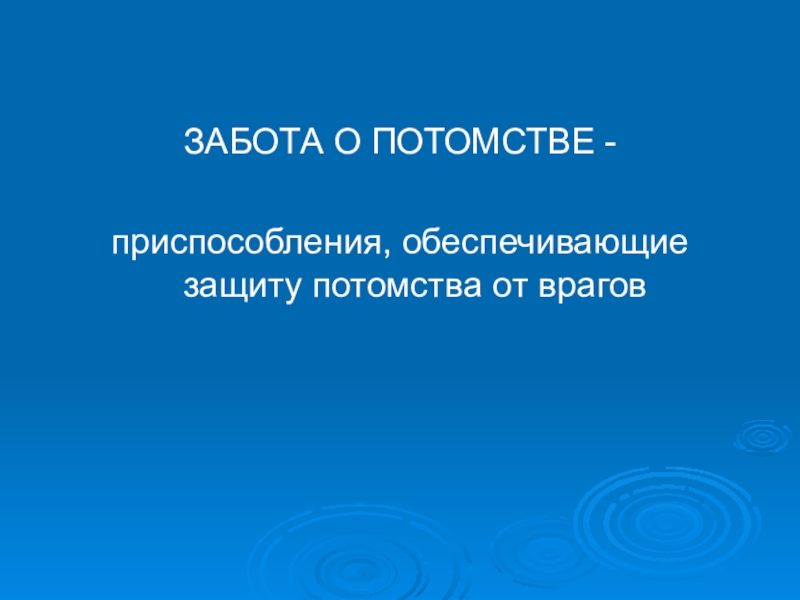 ЗАБОТА О ПОТОМСТВЕ -приспособления, обеспечивающие защиту потомства от врагов