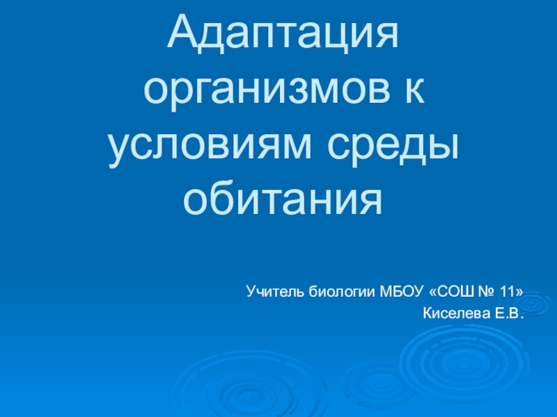 Адаптация организмов к условиям среды обитанияУчитель биологии МБОУ «СОШ № 11»Киселева Е.В.