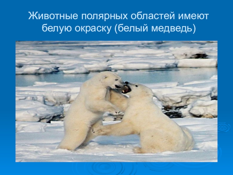 Слайд 20Животные полярных областей имеют белую окраску (белый медведь)