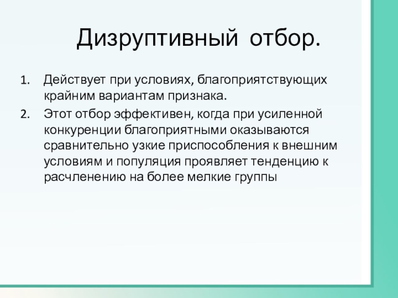 при усиленной конкуренции благоприятными оказываются сравнительно узкие приспособления к внешним условиям и популяция проявляет тенденцию к расчленению на более мелкие группы