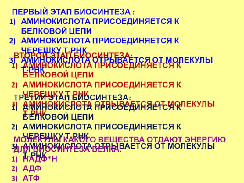 МОЛЕКУЛЫ КАКОГО ВЕЩЕСТВА ОТДАЮТ ЭНЕРГИЮ ДЛЯ БИОСИНТЕЗА БЕЛКА: