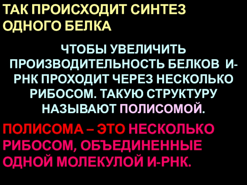 ПОЛИСОМА – ЭТО НЕСКОЛЬКО РИБОСОМ, ОБЪЕДИНЕННЫЕ ОДНОЙ МОЛЕКУЛОЙ И-РНК.