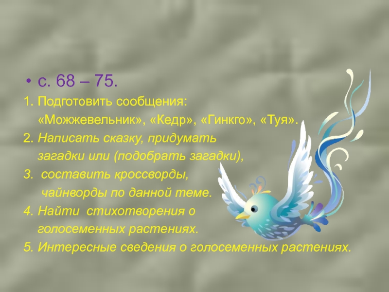 Заключительный урок: По теме: ГОЛОСЕМЕННЫЕ