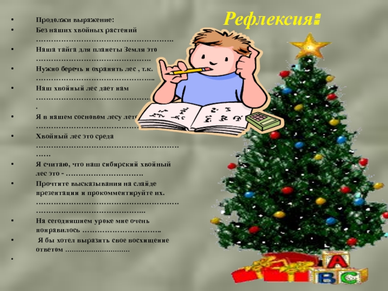 Я считаю, что наш сибирский хвойный лес это - ………………………….