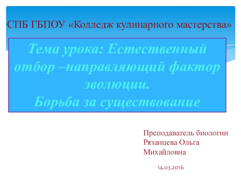 Тема урока: Естественный отбор –направляющий фактор эволюции.