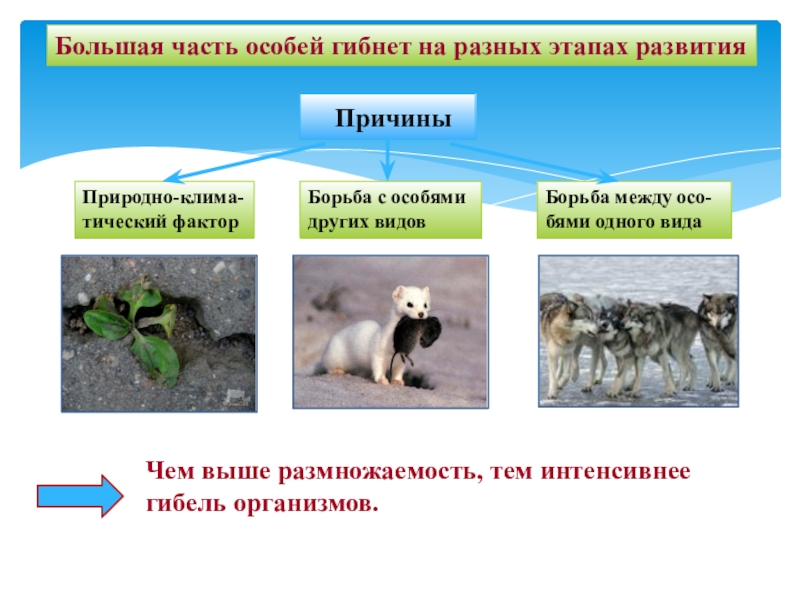 Чем выше размножаемость, тем интенсивнее гибель организмов.