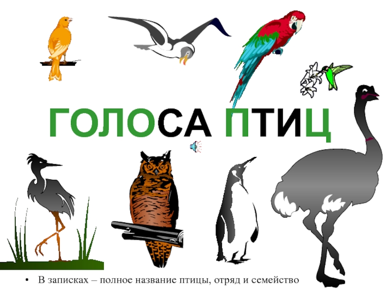 ГОЛОСА ПТИЦВ записках – полное название птицы, отряд и семейство