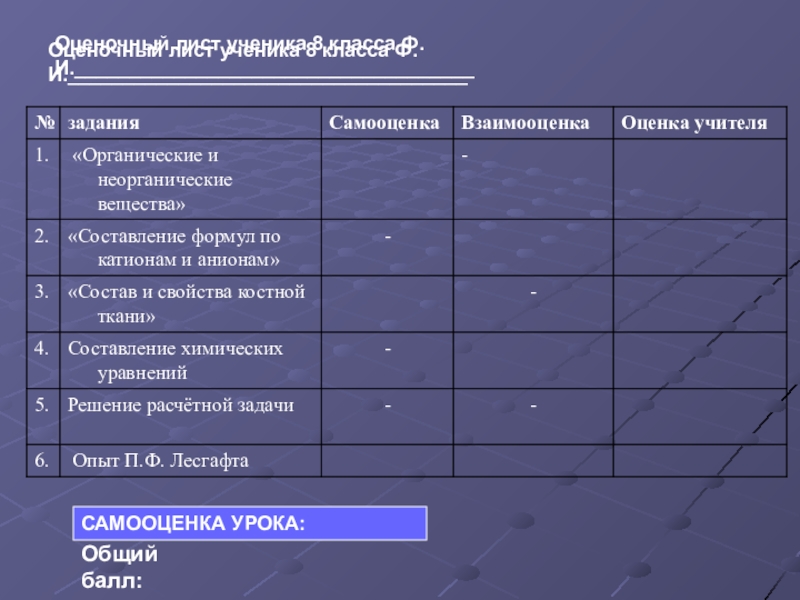 САМООЦЕНКА УРОКА: