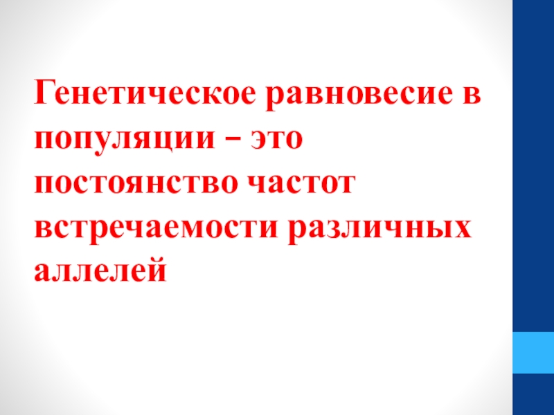 Слайд 3Генетическое равновесие в популяции – это постоянство частот встречаемости различных аллелей