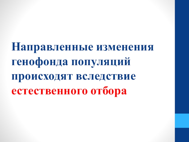 Слайд 8Направленные изменения генофонда популяций происходят вследствие естественного отбора
