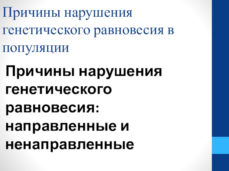 Причины нарушения генетического равновесия в популяцииПричины нарушения генетического равновесия: направленные и ненаправленные