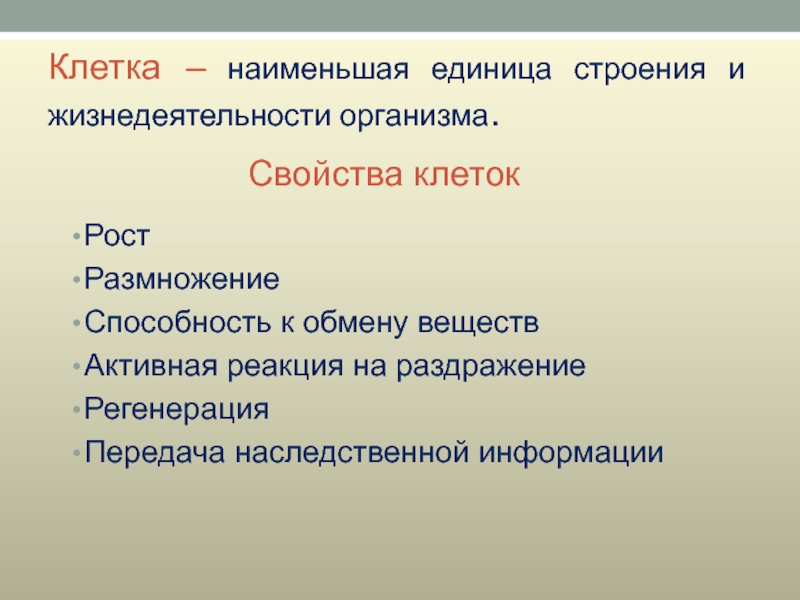 Свойства клеток