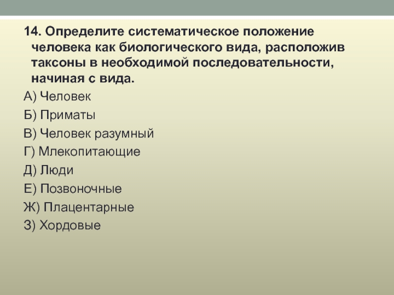 2. Человека относят к отряду: