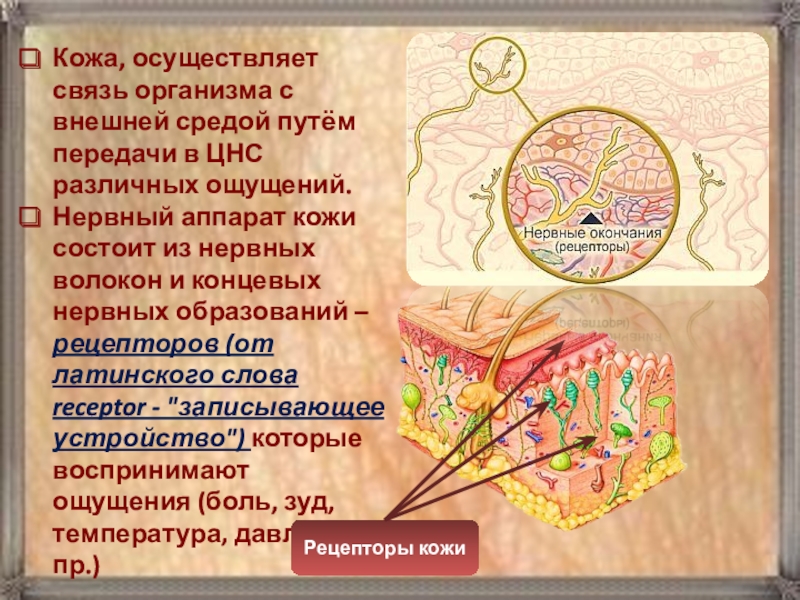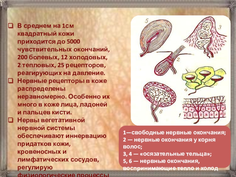 5, 6 — нервные окончания, воспринимающие тепло и холод