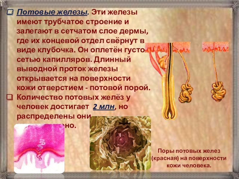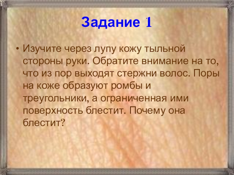 1 - устье волосяного фолликула (пора), открывающееся на поверхность кожи.