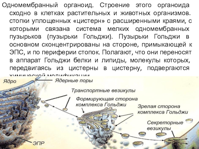 Слайд 8Одномембранный органоид. Строение этого органоида сходно в клетках растительных и животных