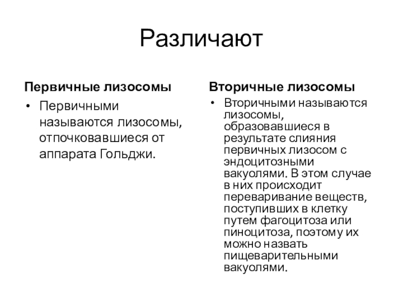 Первичными называются лизосомы, отпочковавшиеся от аппарата Гольджи.