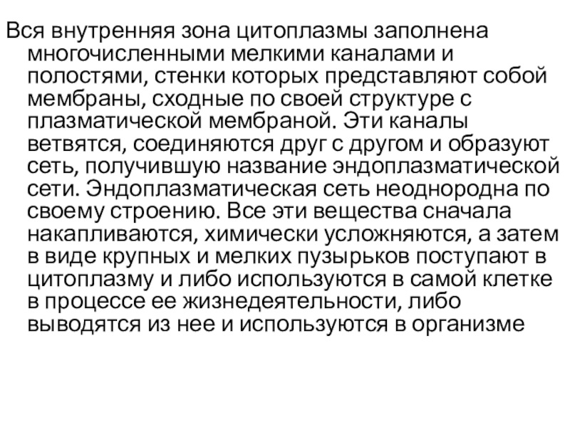 Слайд 4Вся внутренняя зона цитоплазмы заполнена многочисленными мелкими каналами и полостями, стенки