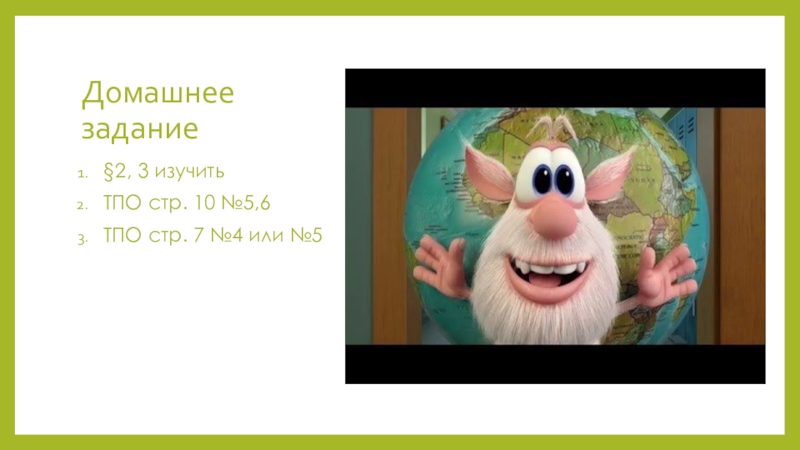 Домашнее задание§2, 3 изучитьТПО стр. 10 №5,6ТПО стр. 7 №4 или №5