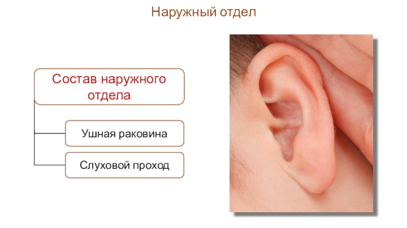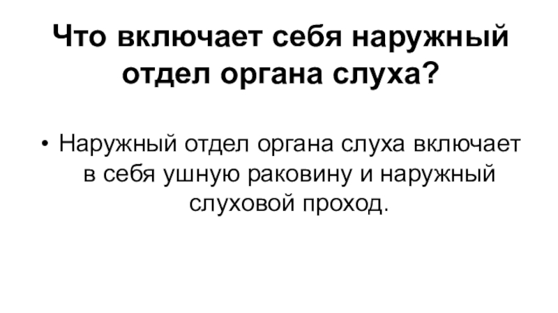 Слайд 28Что включает себя наружный отдел органа слуха?