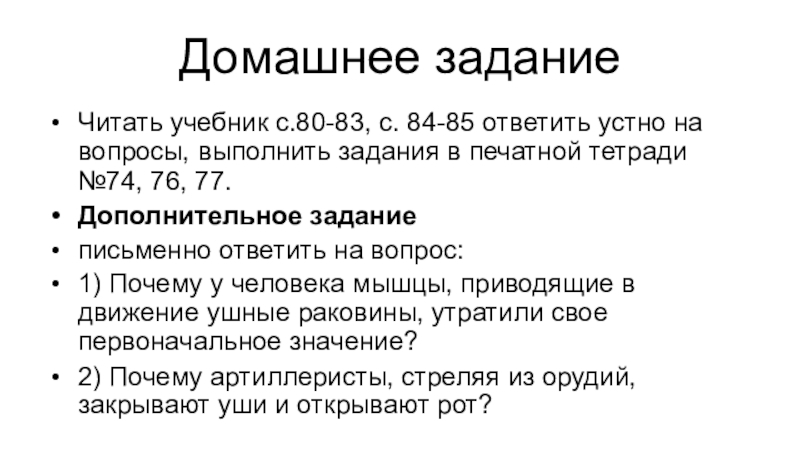 Читать учебник с.80-83, с. 84-85 ответить устно на вопросы, выполнить