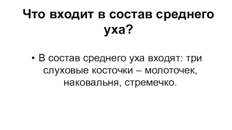 Слайд 29Что входит в состав среднего уха?