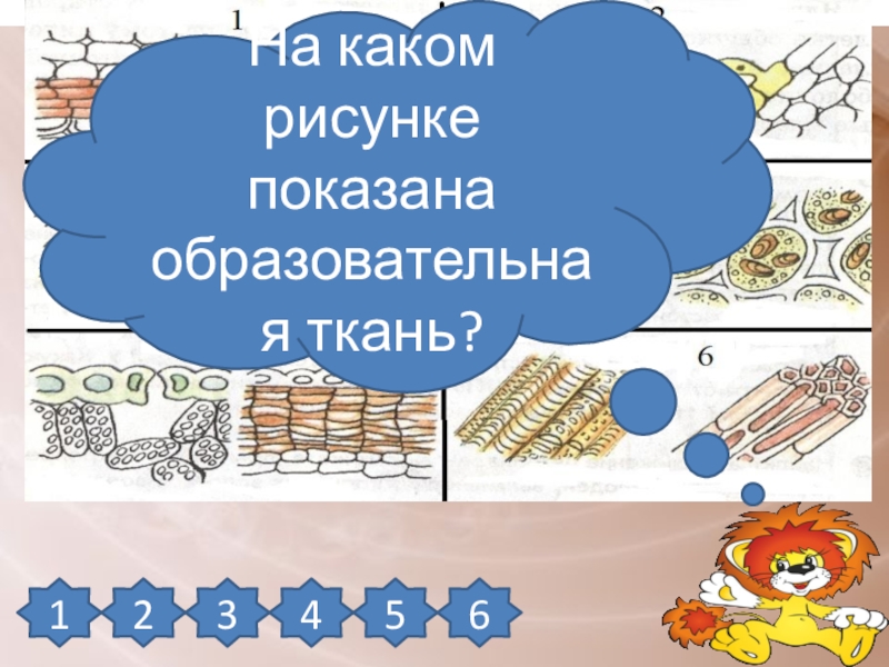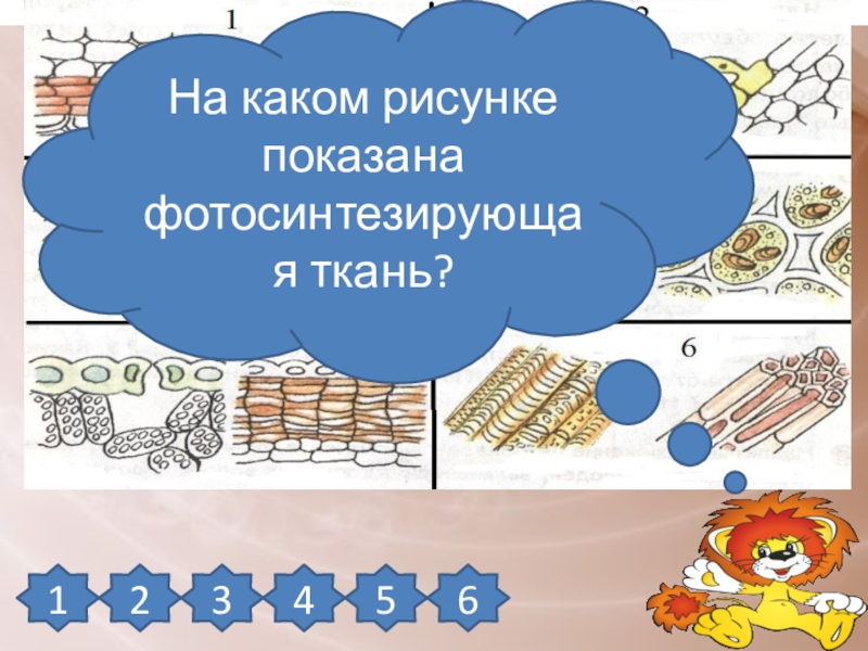 На каком рисунке показана фотосинтезирующая ткань?123456