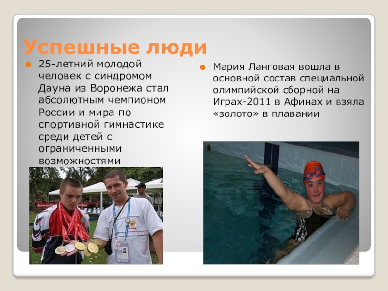Мария Ланговая вошла в основной состав специальной олимпийской сборной на Играх-2011 в Афинах и взяла «золото» в плавании