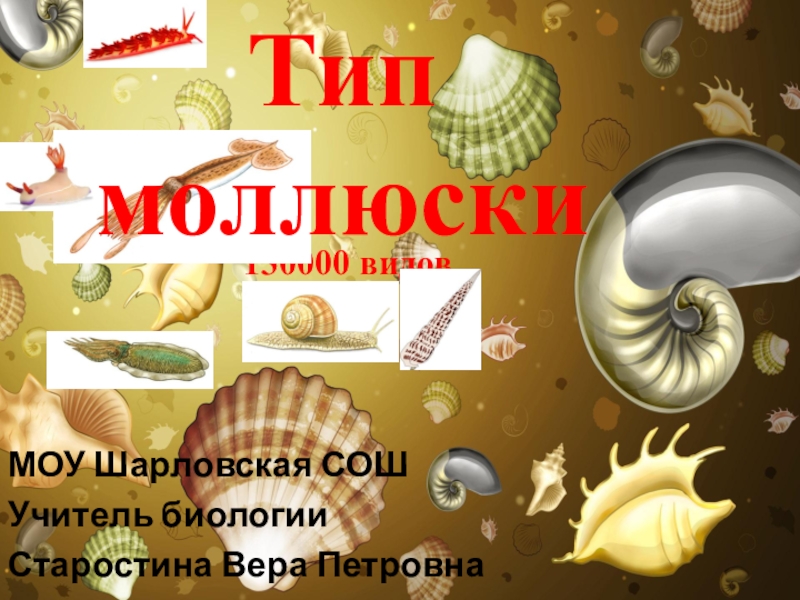 130000 видовТип моллюски​МОУ Шарловская СОШУчитель биологииСтаростина Вера Петровна