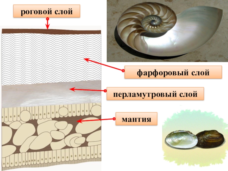 Слайд 7У большинства моллюсков имеется раковина, которая выполняет защитную функцию, к ней