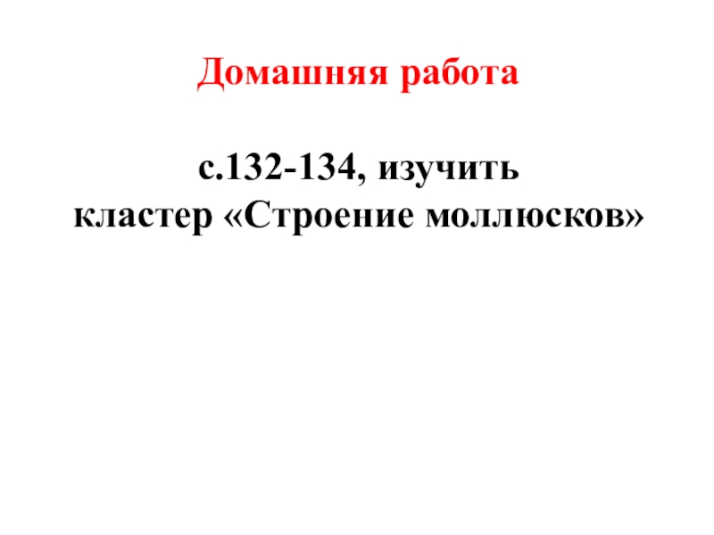 Домашняя работас.132-134, изучитькластер «Строение моллюсков»