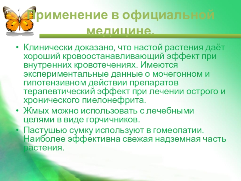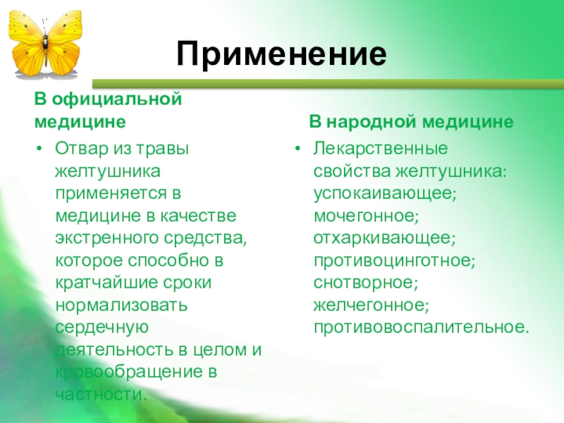 Лекарственные свойства желтушника: успокаивающее; мочегонное; отхаркивающее; противоцинготное; снотворное; желчегонное; противовоспалительное.