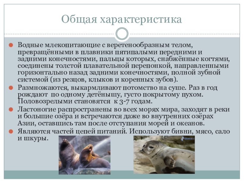 Отряда ластоногие распадается на 2 надсемейства; Первое из них включает 2