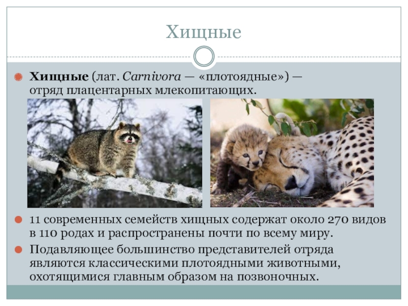 Хищные (лат. Carnivora — «плотоядные») — отряд плацентарных млекопитающих.