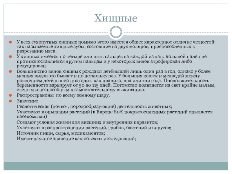 У всех сухопутных хищных помимо этого имеется общее характерное отличие челюстей: