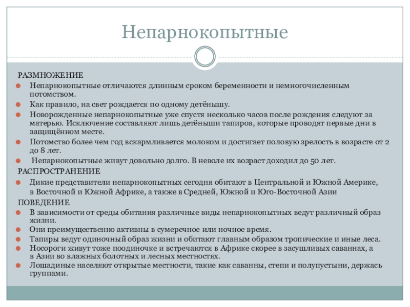 Непарнокопытные отличаются длинным сроком беременности и немногочисленным потомством.
