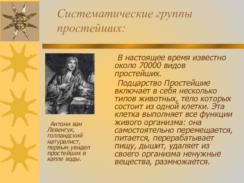 Антони ван Левенгук, голландский натуралист, первым увидел простейших в капле воды.