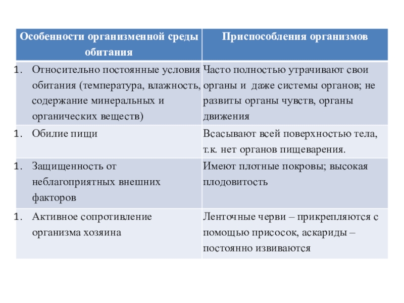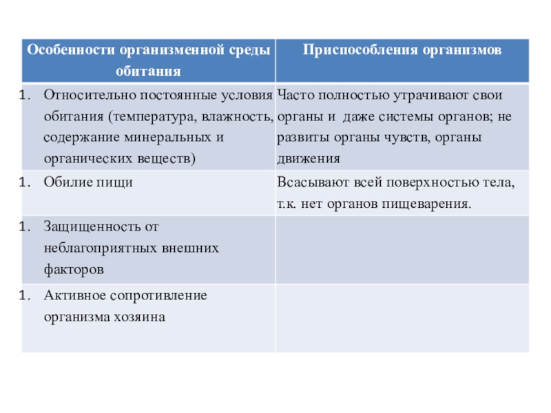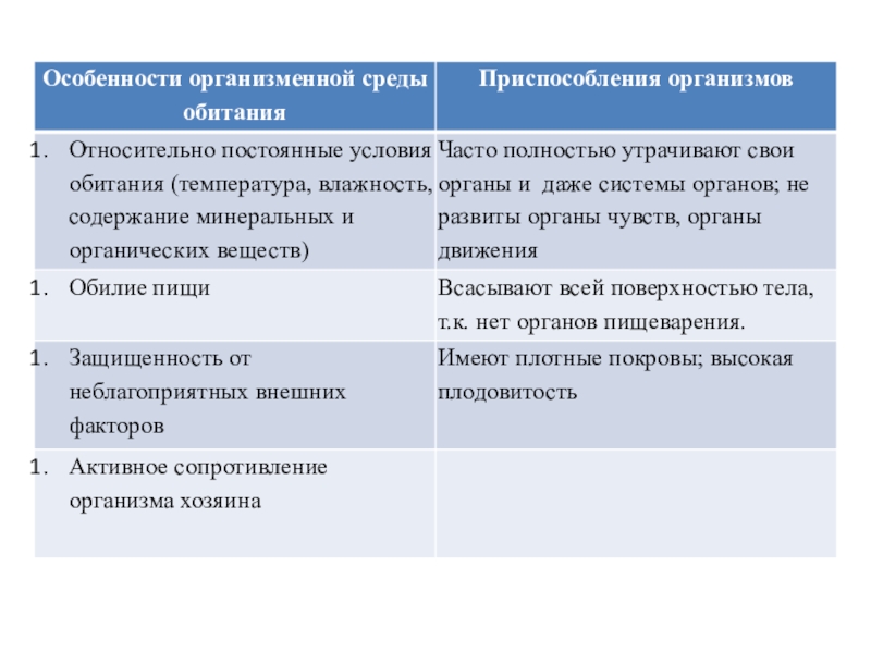 обитает в организменной среде. 3. Как приспособились организмы к обитанию в этой среде.