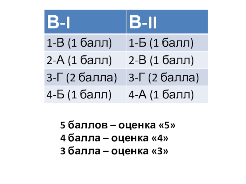 5 баллов – оценка «5»4 балла – оценка «4»3 балла – оценка «3»