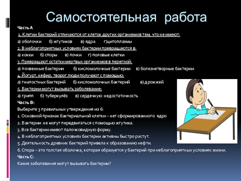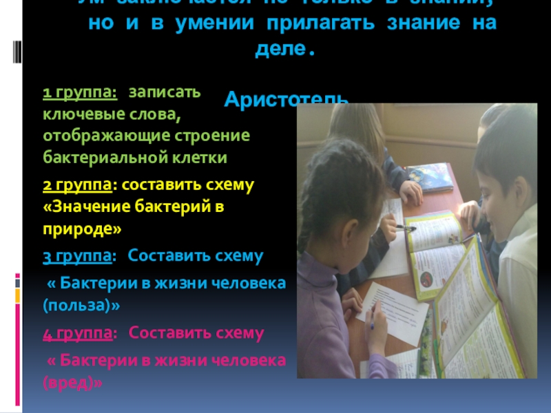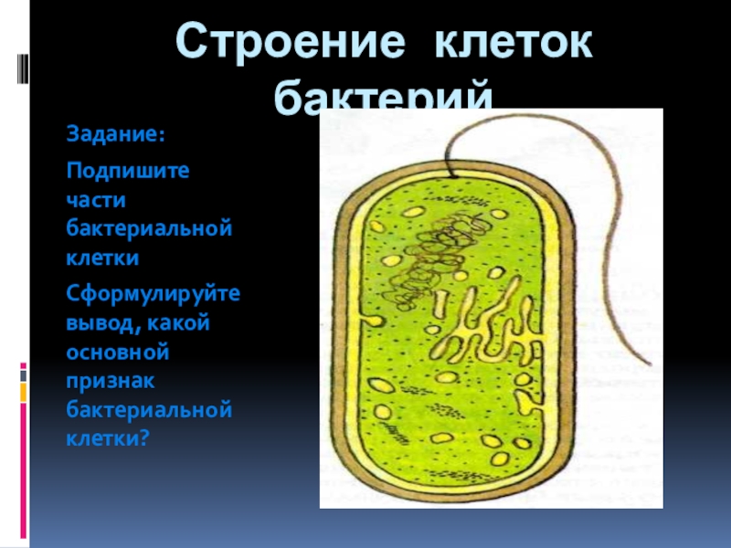 1 группа: записать ключевые слова, отображающие строение бактериальной клетки
