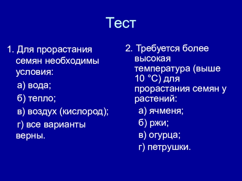 2. Требуется более высокая температура (выше 10 °С) для прорастания семян у растений: