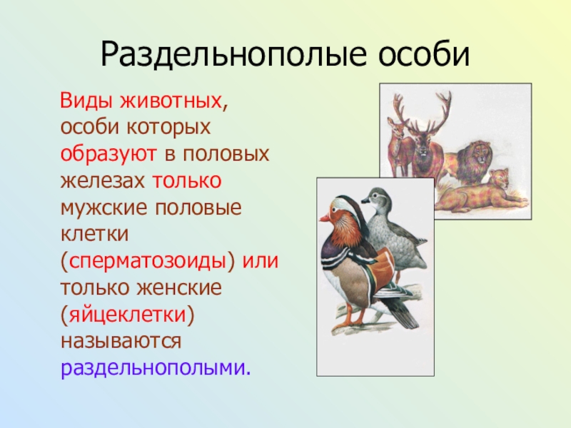 только мужские половые клетки (сперматозоиды) или только женские (яйцеклетки) называются раздельнополыми.