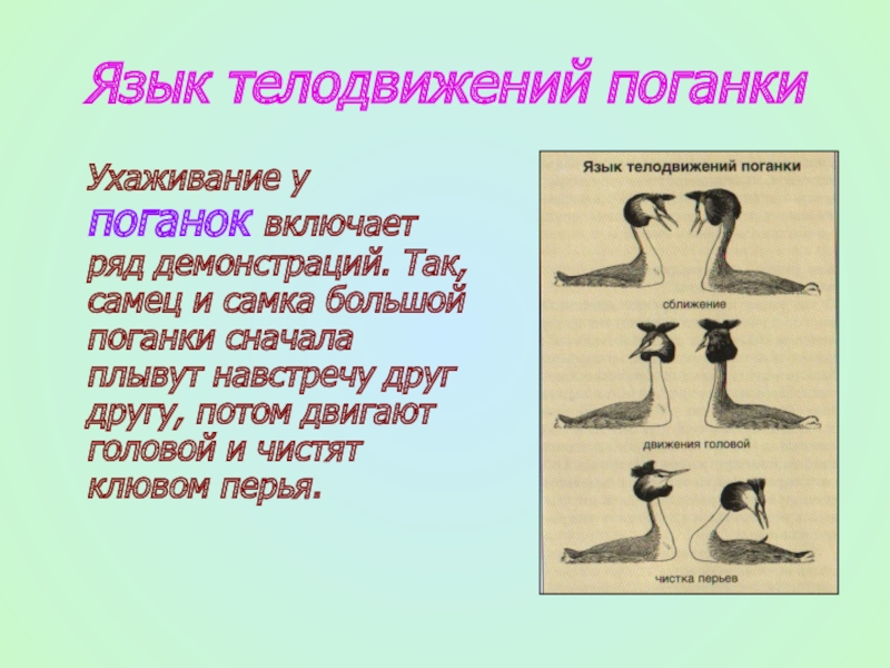 Ухаживание у поганок включает ряд демонстраций. Так,
