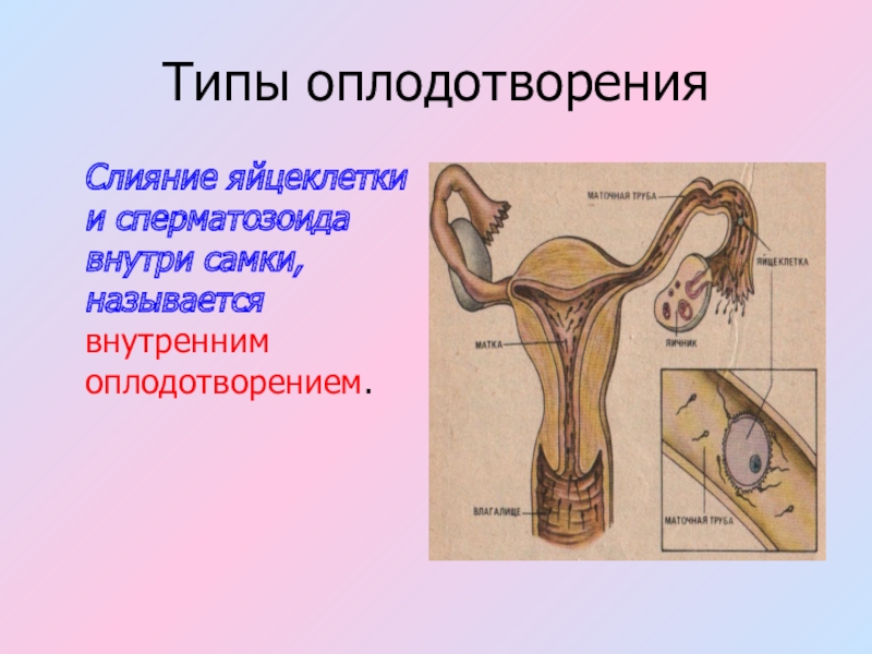 Слияние яйцеклетки и сперматозоида внутри самки, называется внутренним