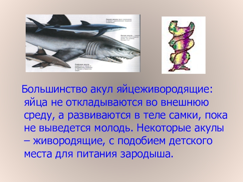 Большинство акул яйцеживородящие: яйца не откладываются во внешнюю среду, а